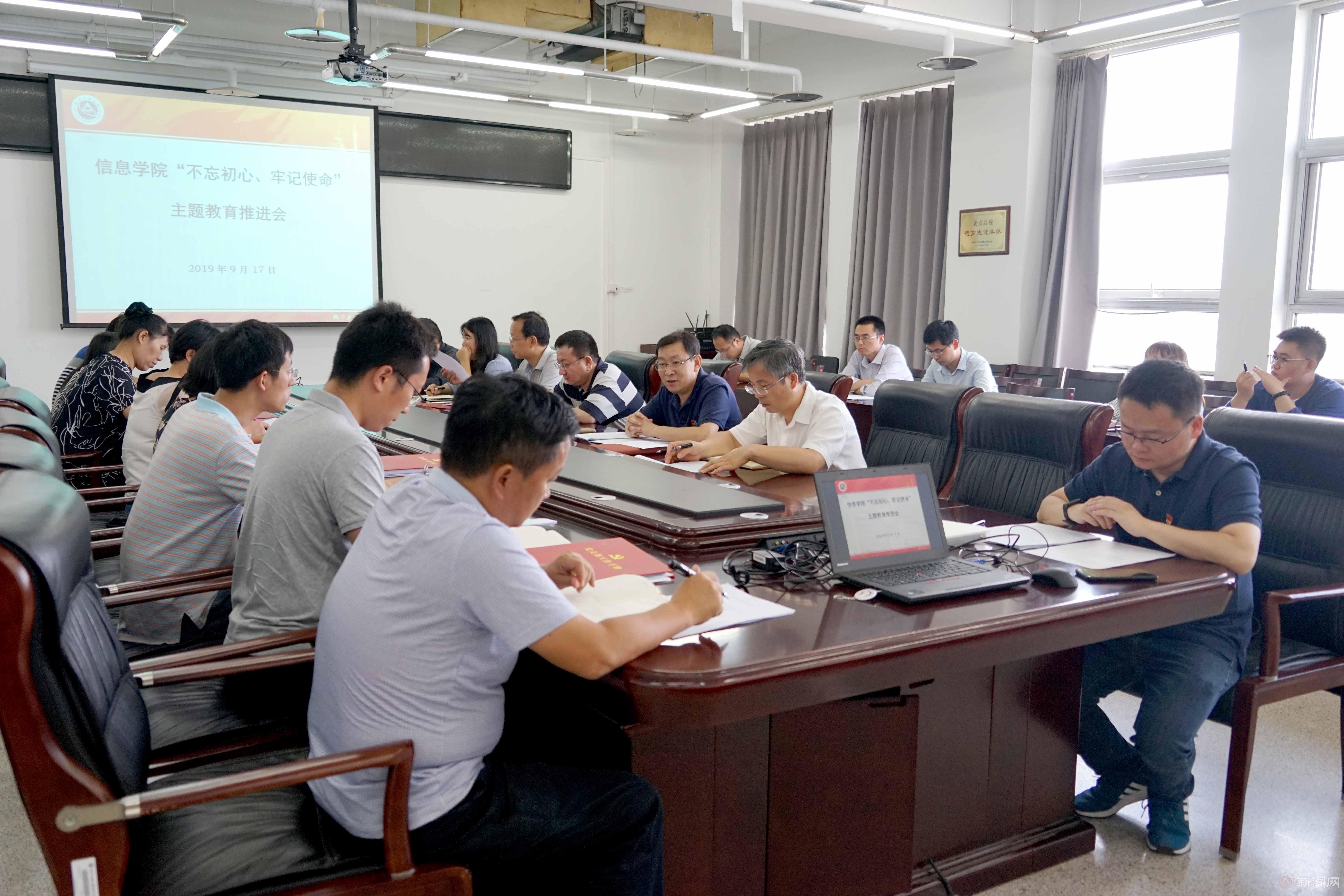 9月17日,信息學院在瀚學樓1014召開“不忘初心、牢記使命”主題教育推進會,學院黨委書記劉文楷主持會議,全體黨支部書記參加了會議。