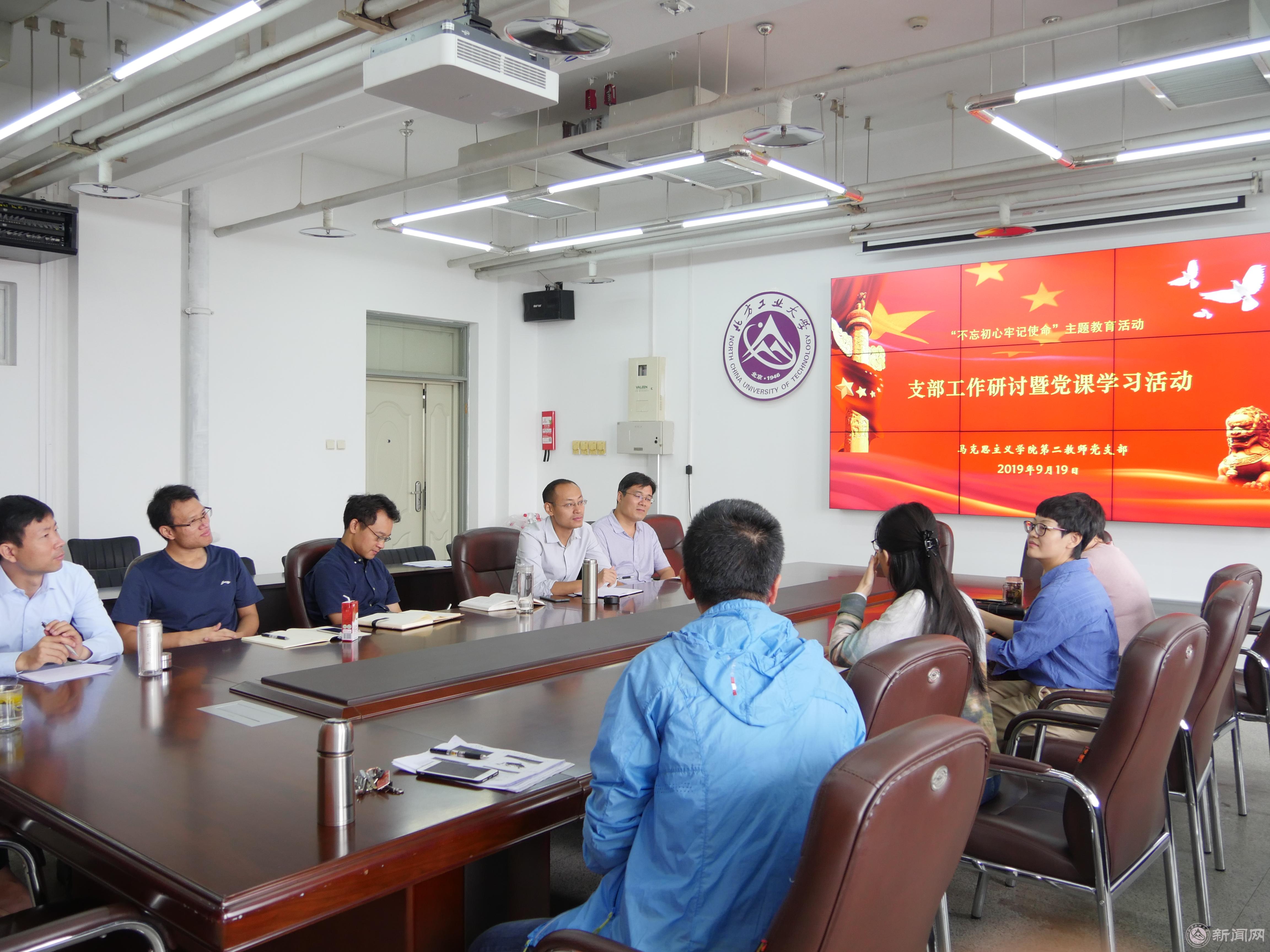 學院第二教師黨支部也迅速響應,組織召開了“不忘初心、牢記使命”主題教育工作研討暨黨課學習會。支部黨員紀萍萍同志結合思政課教學實際,分享了一次關于如何讓思政課走近學生生活的專題黨課;支部書記王潔敏同志帶領大家討論了如何把學校和學院工作部署落實到教學中的建議,明確了支部工作的著力點。