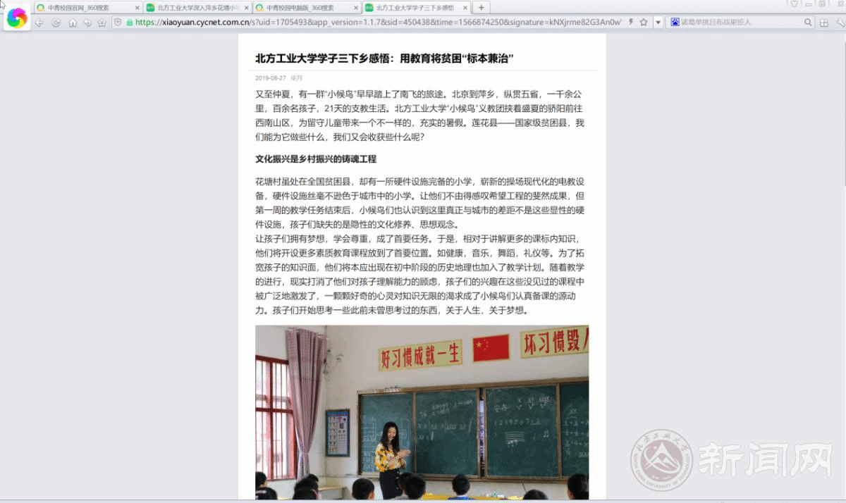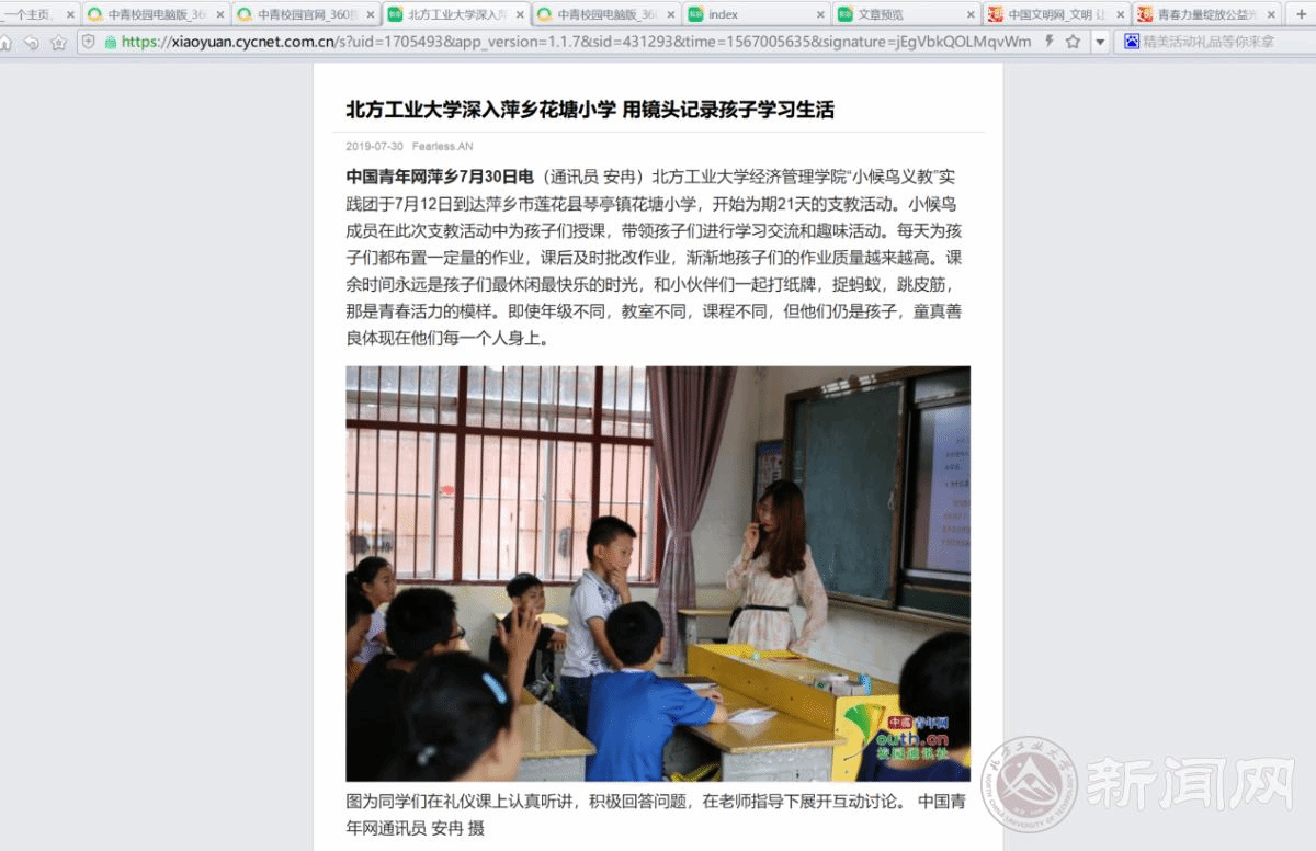 3、中青網(三下鄉官網)多次報導“小候鳥”義教實踐團活動
