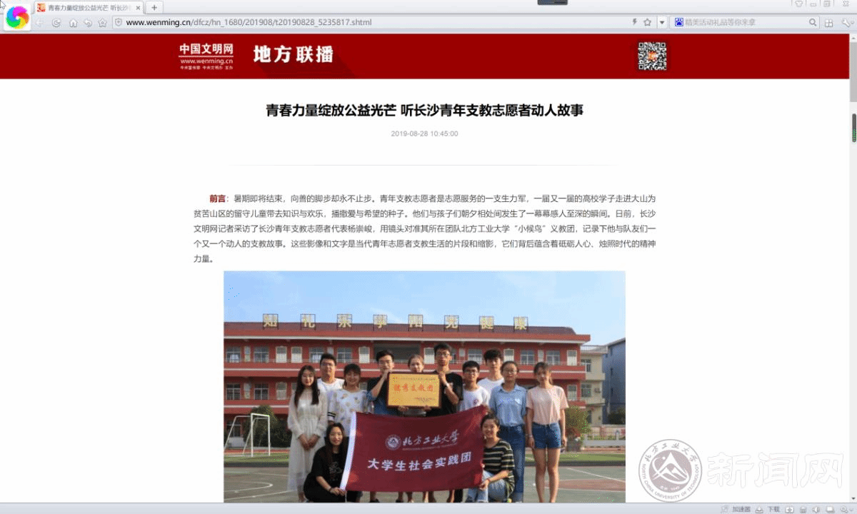 1、中國文明網在線報道“小候鳥”義教實踐團