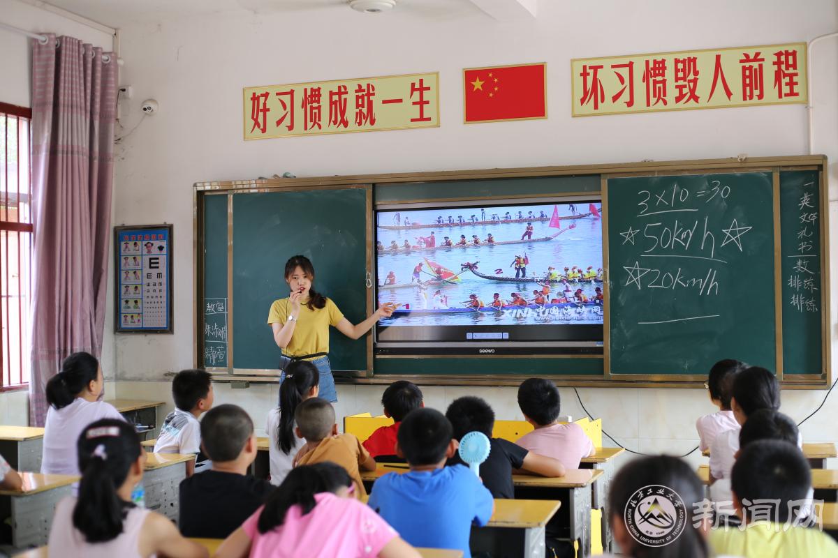在教學初期支教大學生們發現花塘小學的孩子們缺乏對世界充分了解的途徑,實踐團本著“教書育人兩手抓”的原則和“雖千萬里吾往矣”的精神在支教過程中一直堅持言傳身教,以身作則,在教孩子們文化知識的同時更在引導孩子們樹立遠大的志向和目標。鼓勵孩子們要先走出農村,再反哺農村,以建設更好的家鄉為己任,為祖國的鄉村振興建設貢獻新生力量,為中華民族偉大復興提供源源不斷的動力。