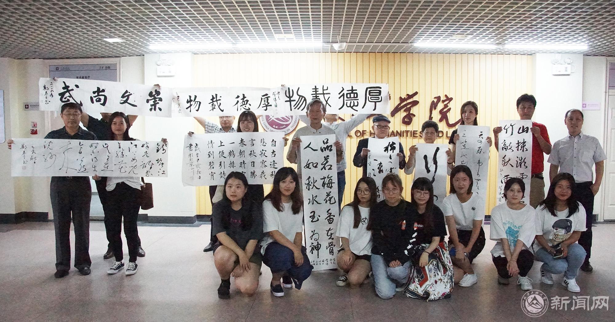 日前,在瀚學(xué)樓文法學(xué)院學(xué)術(shù)報告廳,我校國家大學(xué)生素質(zhì)教育基地、賀良樸藝術(shù)研究會與到訪的全日本書藝學(xué)院代表團(tuán)舉行了藝術(shù)交流活動。文法學(xué)院院長劉澤軍、文法學(xué)院書記、國家大學(xué)生素質(zhì)教育基地主任袁本文、賀良樸藝術(shù)研究會會長賀偉國親切會見全日本書藝學(xué)院代表團(tuán)一行。