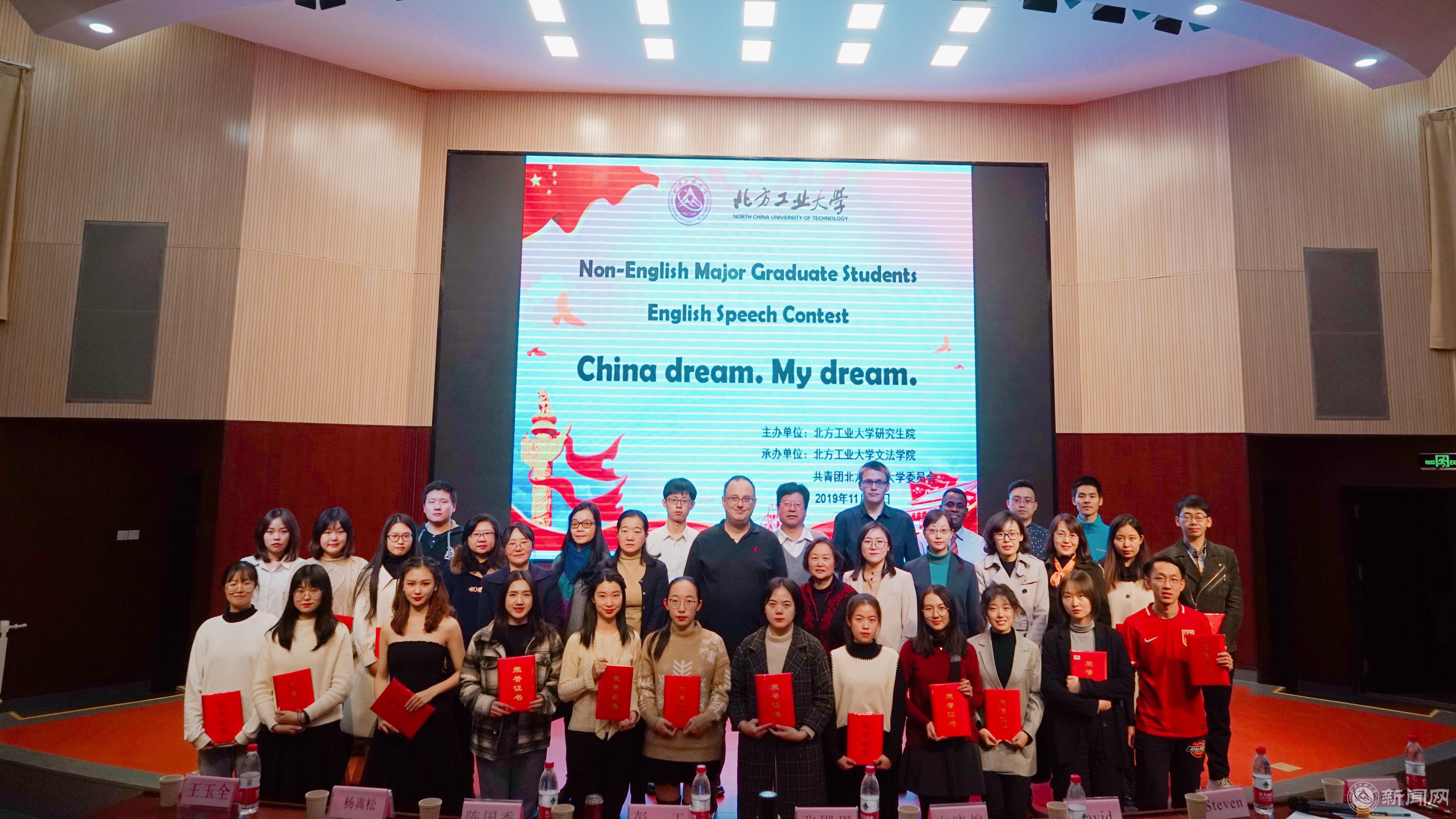 11月21日下午,由北方工業大學研究生院主辦,文法學院和共青團北方工業大學委員會共同承辦第十一屆研究生英語演講比賽決賽在文化會堂圓滿舉行。研究生院副院長王玉全、研究生工作部副部長楊嵩松、校團委副書記陳國秀出席比賽并致辭,來自各學院的200名師生觀看了比賽。