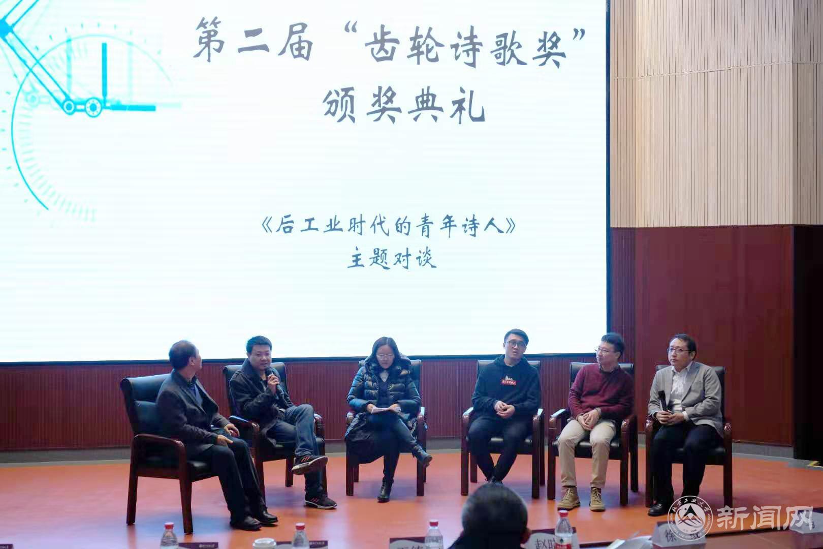 第二屆齒輪詩歌節(jié)系列活動(dòng)共分為三個(gè)部分:齒輪詩歌獎(jiǎng)?lì)C獎(jiǎng)典禮、“青年詩人研討會(huì)”和著名詩人、中國(guó)人民大學(xué)王家新教授的詩歌講座。“青年詩人研討會(huì)”由中文系趙曉輝老師主持,圍繞參賽作品及“自在與物事”、“女性與生活”、“語言的劇場(chǎng)”、“時(shí)空的想象”為主題進(jìn)行了研討。王家新教授的講座以“策蘭與語言的異鄉(xiāng)”為主題,由中文系馮雷老師主持。