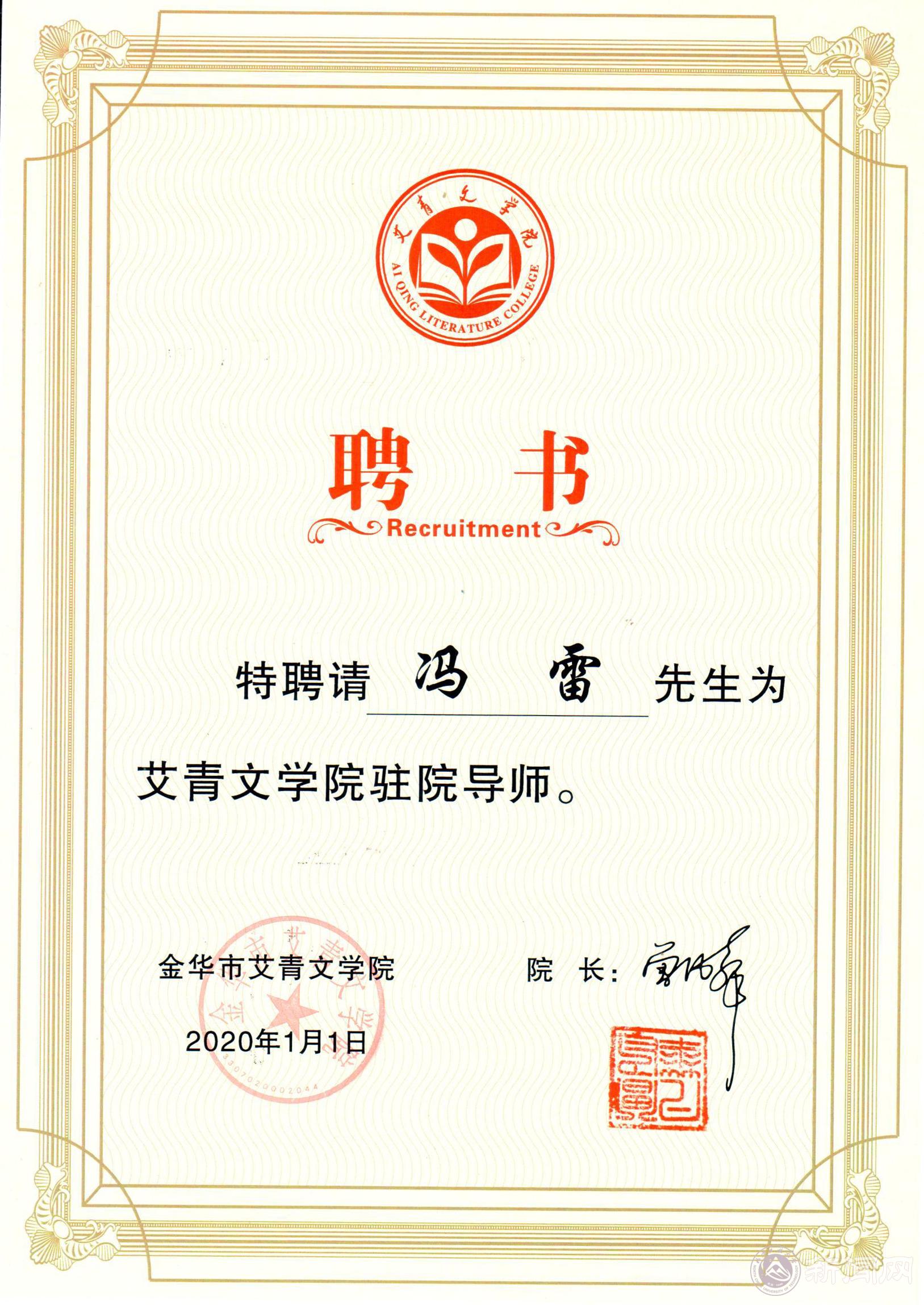 近日,我校文法學(xué)院中文系教師馮雷被艾青文學(xué)院聘為駐院導(dǎo)師。