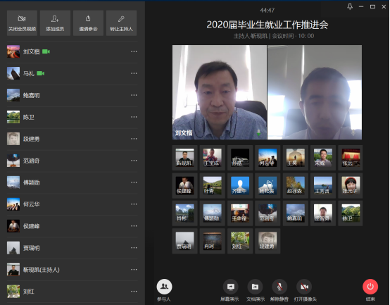 為切實推進2020屆畢業生就業工作,進一步落實學校關于做好2020屆畢業生就業工作的要求,4月17日上午,信息學院召開2020屆畢業生就業工作推進視頻會議。學院黨委書記劉文楷、院長馬禮、副院長宋威、各系主任、2020屆畢業班班導師及輔導員參會。會議由學院黨委副書記陳衛主持。