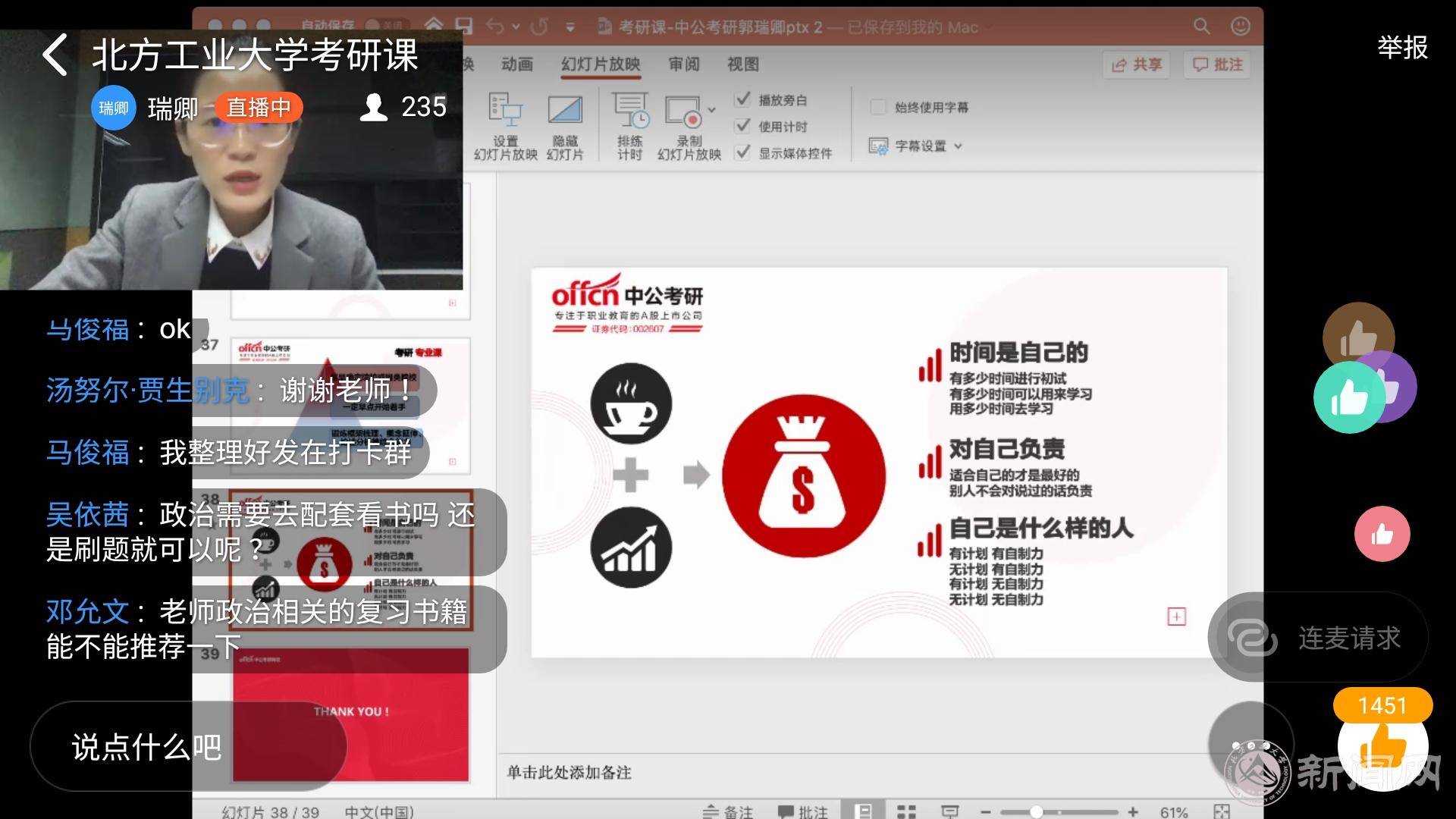 上學期,學院已根據專業特色和學生個性化需求,分別舉辦了3場考研動員會和專題輔導講座。學院希望通過這些系列考研輔導講座,使同學們更加清晰地認識考研形勢,更好準確地了解考研復習的發力點,鼓舞了復習備考的信心和決心。此次線上講座的舉辦有利于使學生意識到考研的重要性與緊迫性,復習準備更具針對性,也讓學生了解了自己的現狀,熟悉了考研經驗和正確的考研方法,為同學們積極備考助力、加油。