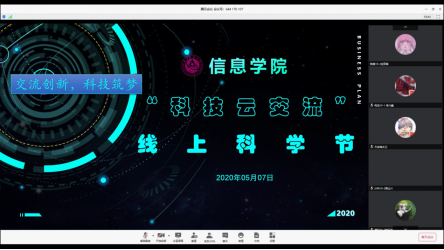 疫情期間,為鼓勵學生自主學習,“停課不停學”,“宅家不放松”,信息學院著手打造6支宅家創新團隊,并于5月7日召開“交流創新,科技筑夢”——創新“云”交流活動。此活動作為科學節的一部分,采用騰訊會議直播,6支團隊依次介紹學習研究進展和宅家學習心得,并通過聊天板進行交流答疑。開場瞬間就達到了會議300人上限,交流機會供不應求。
