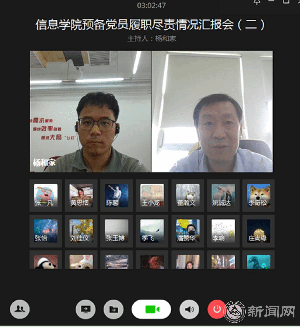 為加強對預備黨員的教育和管理,綜合考察預備黨員一年預備期期間先鋒模范作用的發揮,信息學院黨委于5月21日和22日下午在企業微信召開了兩場“預備黨員履職盡責情況匯報會”。學院黨委委員、支部書記、學生黨建中心成員對63名預備黨員在預備黨員期內的履職盡責情況進行了考核評價。會議由學院學生黨建中心副主任楊和家主持。