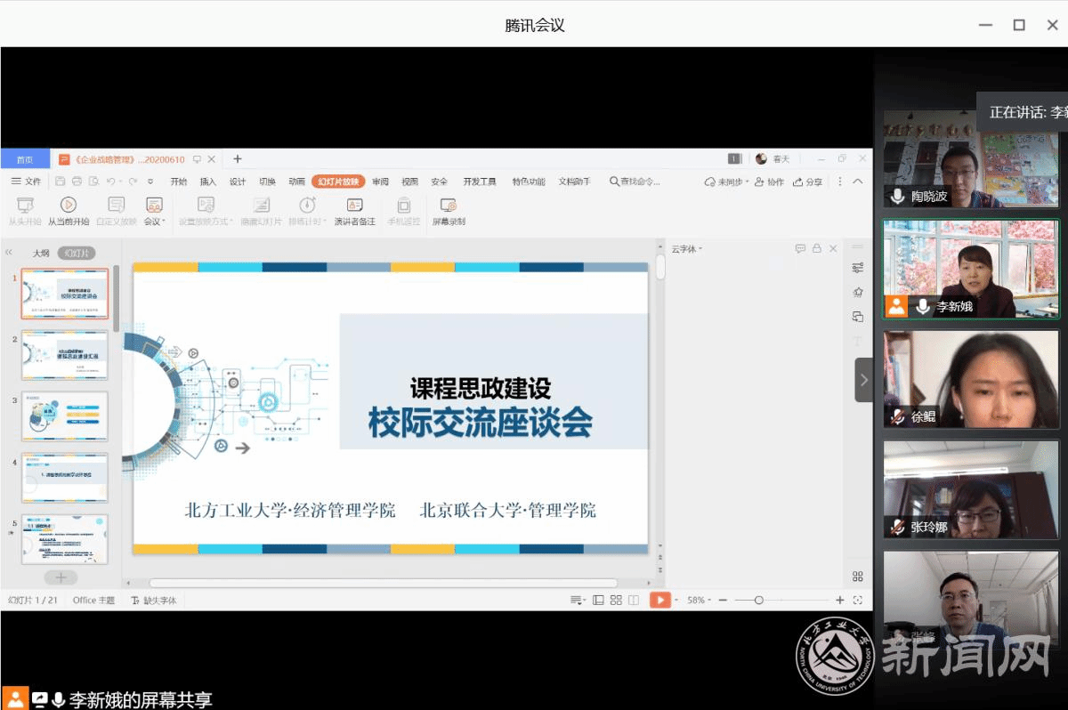 6月10日下午,為進(jìn)一步推進(jìn)課程思政建設(shè)工作,經(jīng)管學(xué)院與北京聯(lián)合大學(xué)管理學(xué)院開展了課程思政建設(shè)線上交流座談。在學(xué)院黨政聯(lián)席會安排部署下,陶曉波、郝凱、羅文豪三位教師作為代表,參加了此次線上交流座談。