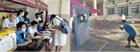 9月9日-10日,學院組建迎新志愿者隊伍輪班值守,嚴格進行新生入學健康篩查,如健康碼、核酸檢測報告檢查等,同時在報到現場準備口罩、消毒液等防疫物資,設立綠色通道、財務咨詢等專門服務點,為迎新工作安全、有序開展保駕護航。學院還專門制作了“微信朋友圈”等紀念展板,為同學們留下入學伊始的珍貴紀念。