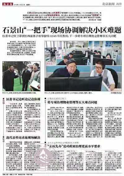 11月21日,石景山區委書記常衛帶領石景山區四套班子領導悉數出現在12345市民熱線服務中心。在一個多小時的熱線接通過程中,石景山區領導共接電116件,同時對于已經處理的訴求進行回訪。熱線接聽結束后,石景山區立即召開現場會,分析評估熱線內容,當場解決,并選取較有代表性的問題,在當天下午現場查看。