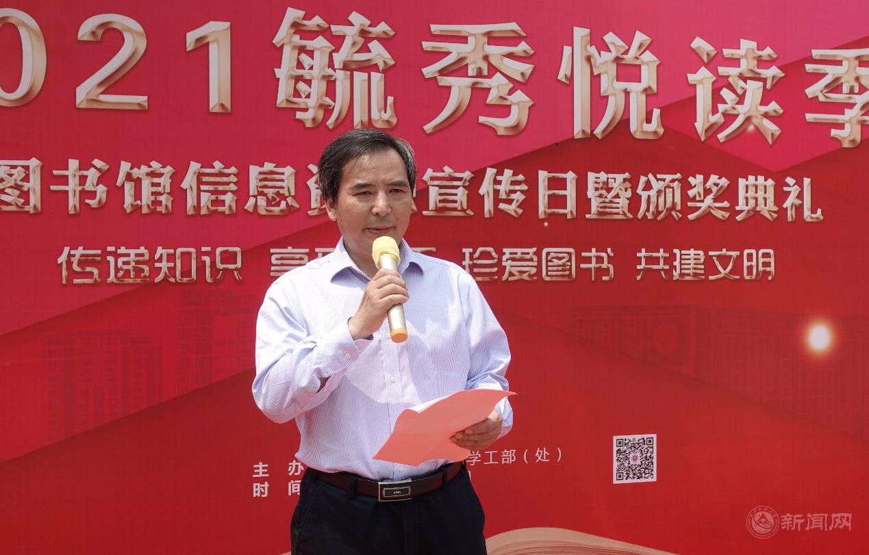 為慶祝建黨100周年,弘揚(yáng)紅色文化,凝聚奮進(jìn)力量,提升圖書館服務(wù)水平,學(xué)校于5月20日上午在毓秀廣場隆重舉行“2021毓秀悅讀季——圖書館信息資源宣傳日活動暨頒獎典禮”。校黨委書記繆勁翔、副校長胡應(yīng)平、副校長王建穩(wěn)、黨委副書記田紅芳出席,學(xué)生工作部(處)、校團(tuán)委、圖書館負(fù)責(zé)人及師生代表200余人參加活動。