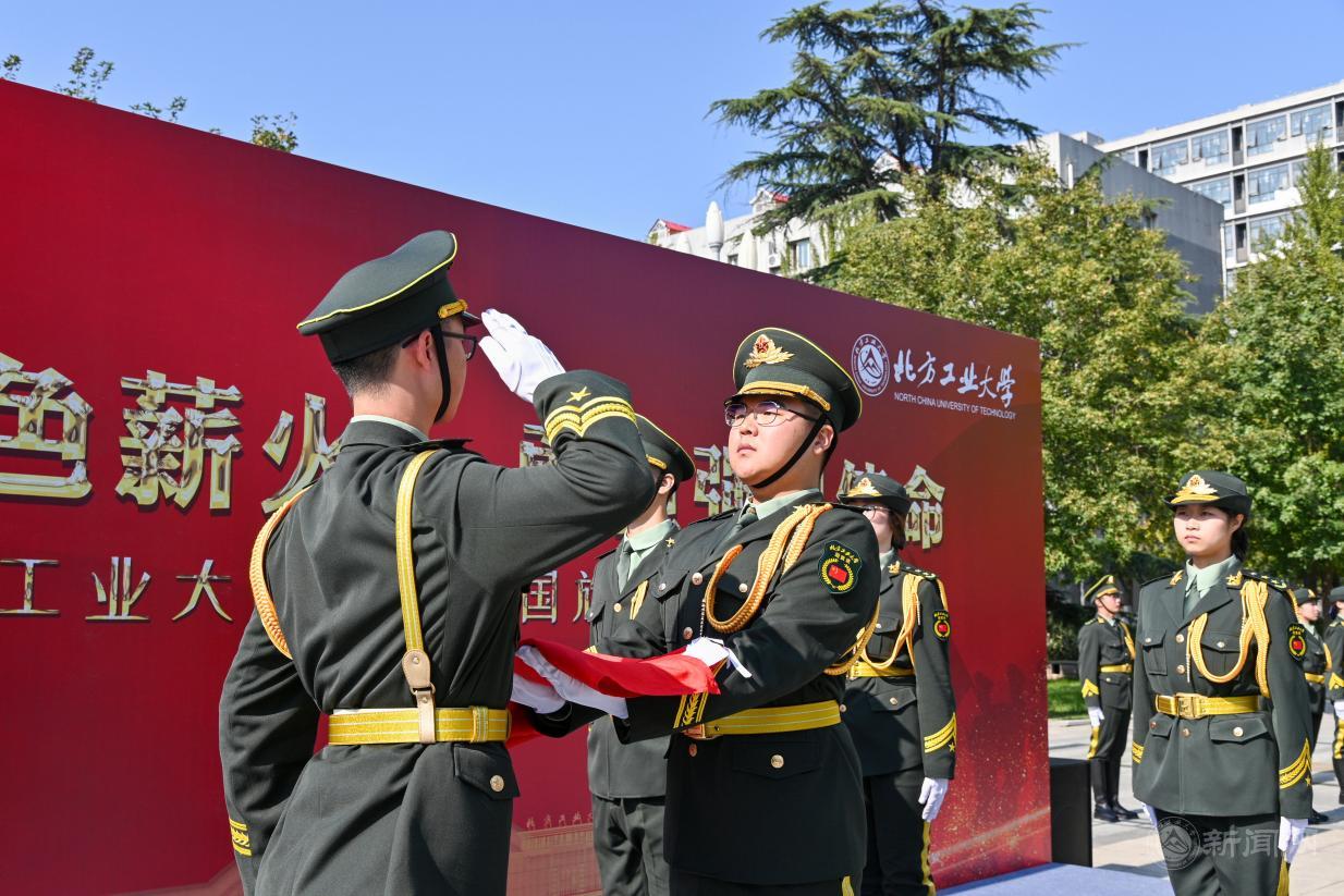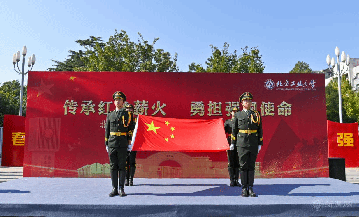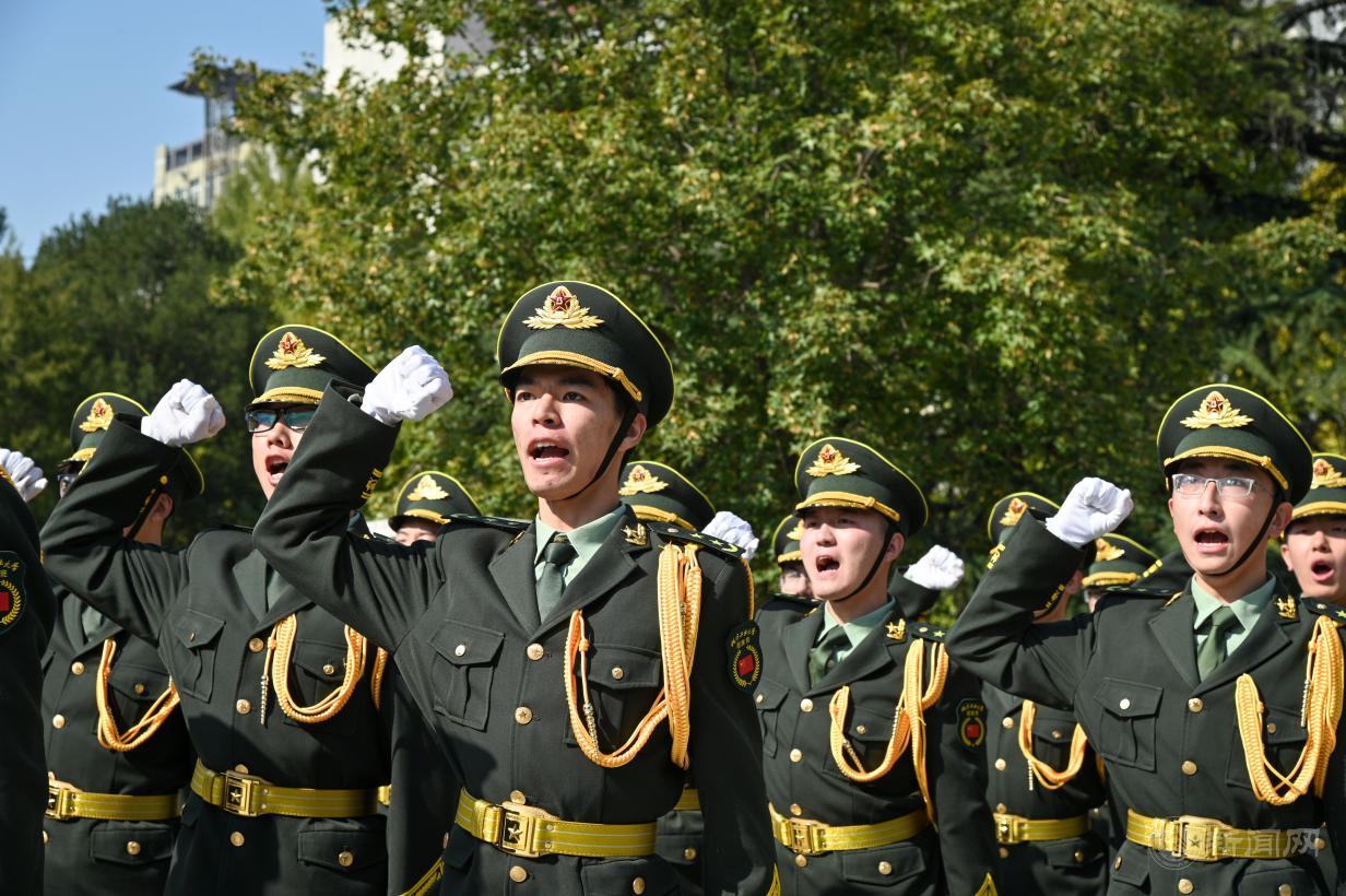 隨后,新老隊員進行了國旗交接,第五屆國旗班53名新隊員在國旗下莊嚴宣誓。“我志愿加入北方工業大學國旗班,堅決服從命令,嚴格遵守紀律,熱愛國旗,護衛國旗,敢于吃苦,甘于奉獻,勇于堅持,決不退縮,以忠誠和擔當捍衛國旗尊嚴,以愛國和奉獻揮灑青春熱血。”錚錚誓言展示出國旗班隊員的初心使命和壯志豪情,也表達出了我校學生濃濃的愛國情感。