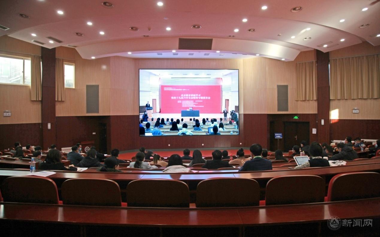 “北京教育系統學習黨的十九屆六中全會精神專題報告會暨思政課教師‘同備一堂課’活動”由中央宣講團成員、原中央黨史研究室主任歐陽淞主講。學校黨委職能部門負責人、各學院副書記、輔導員、思政課教師和馬理論專業研究生等100余人在文化會堂進行集體學習。