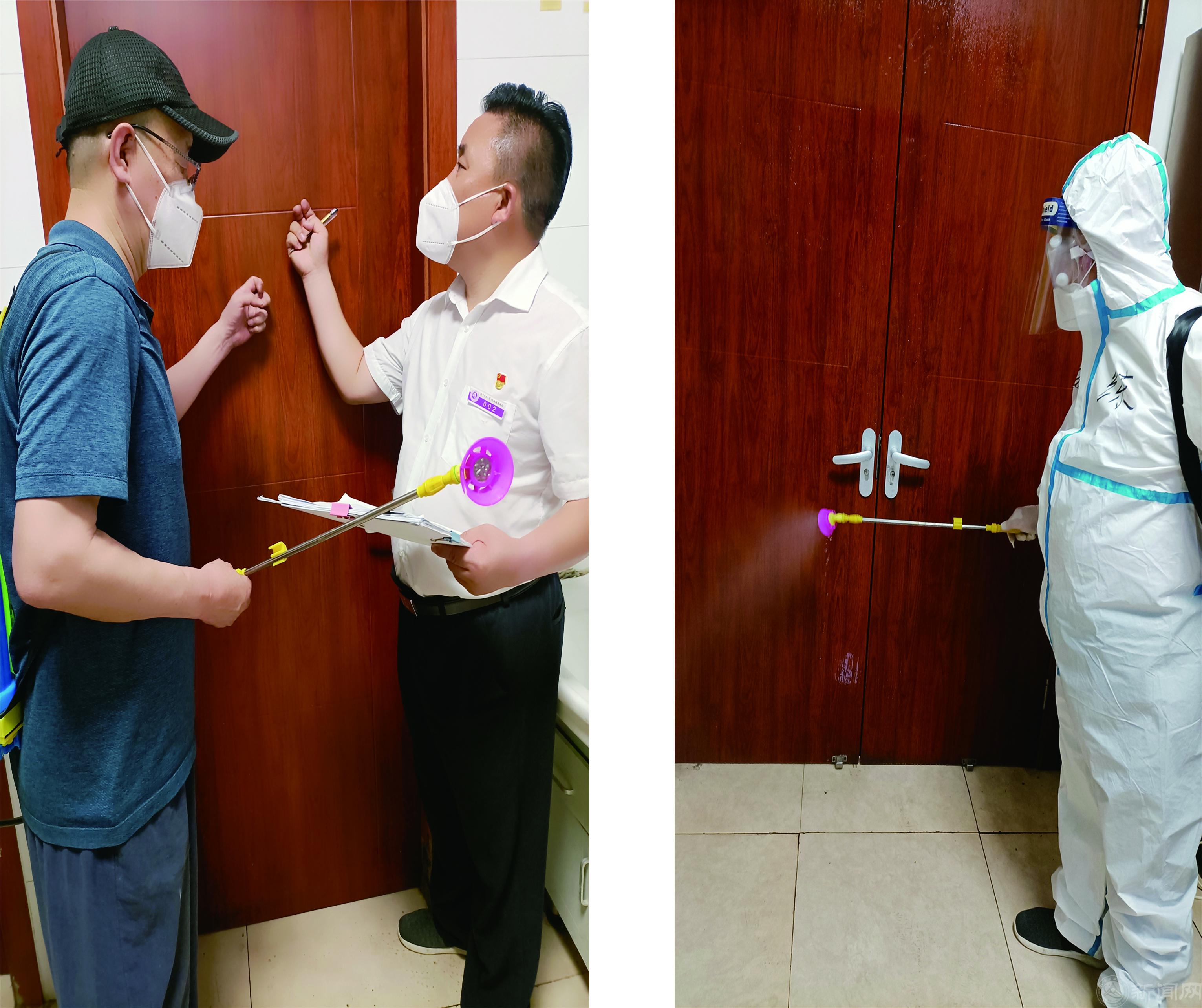 除了做好飲食中心的工作,李成還是家屬區七號樓的樓長志愿者。為準確掌握樓內人員的基本情況,他和志愿者們逐戶打電話,與常住居民溝通、與流動租戶溝通,一星期就打了300多個電話。有的老人聽力不好,他就盡量放慢速度,咬字清晰,反復說明,直到對方聽清楚為止,在他的努力下,全樓的底數很快就被摸清。他帶領志愿者進行噴灑消毒,由于對消毒水過敏,他多次出現流眼淚、嘔吐、頭疼等不良反應,為不影響工作進度,他悄悄處理后繼續堅持消毒工作。