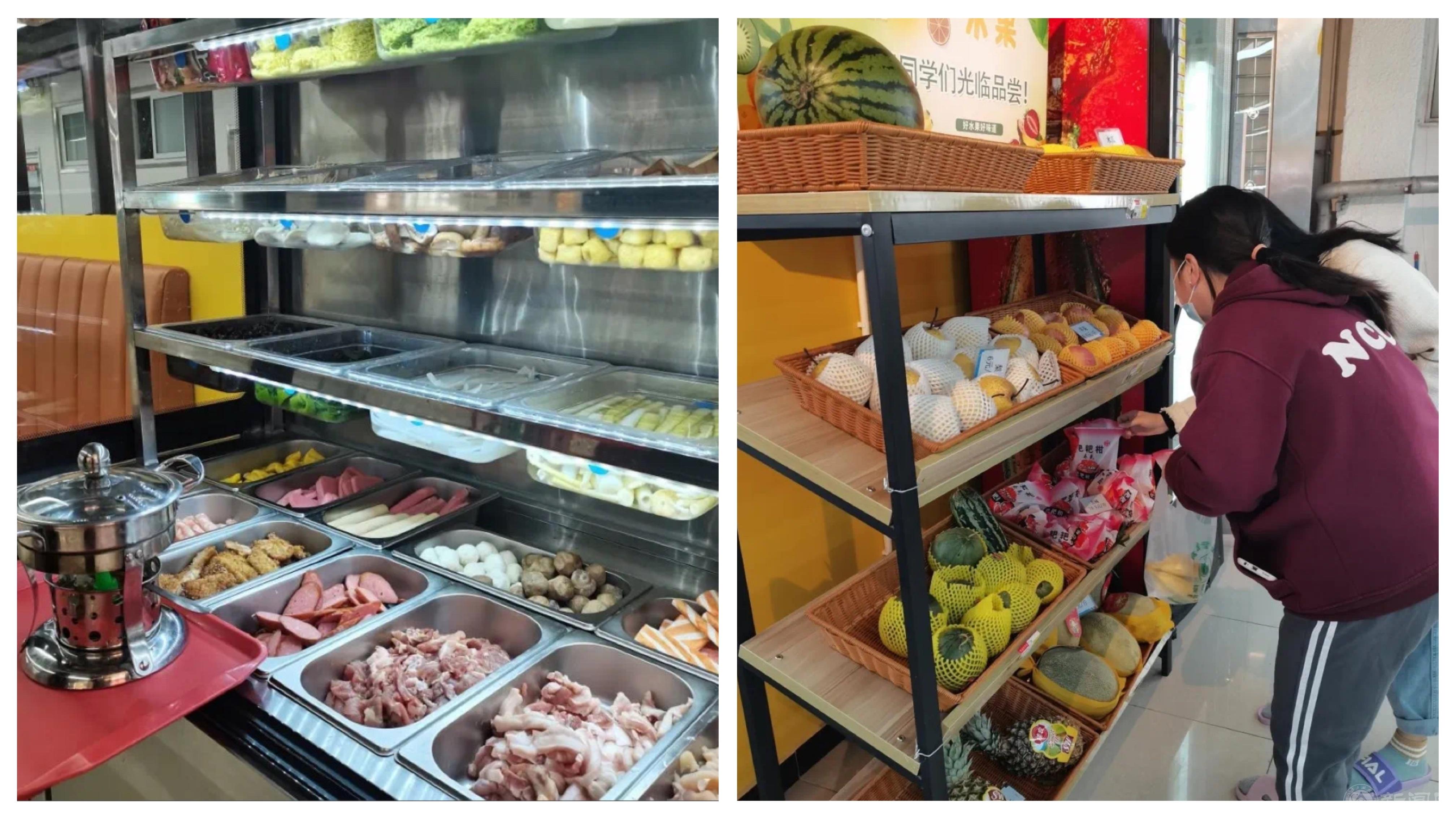 為了讓封閉期間的師生員工吃得好,吃得滿意,食堂增加了小炒、蓋飯、關(guān)東煮、炸串、小火鍋等特色菜品。金鼎學(xué)生食堂還增加麻辣香鍋、麻辣燙、干鍋和水果零售服務(wù)。為減少家屬外出購物帶來的交叉感染風(fēng)險,飲食服務(wù)中心聯(lián)系具備資質(zhì)的供貨商提供優(yōu)質(zhì)貨源,定期設(shè)立“便民售菜點(diǎn)”,老師及家屬踴躍購買。