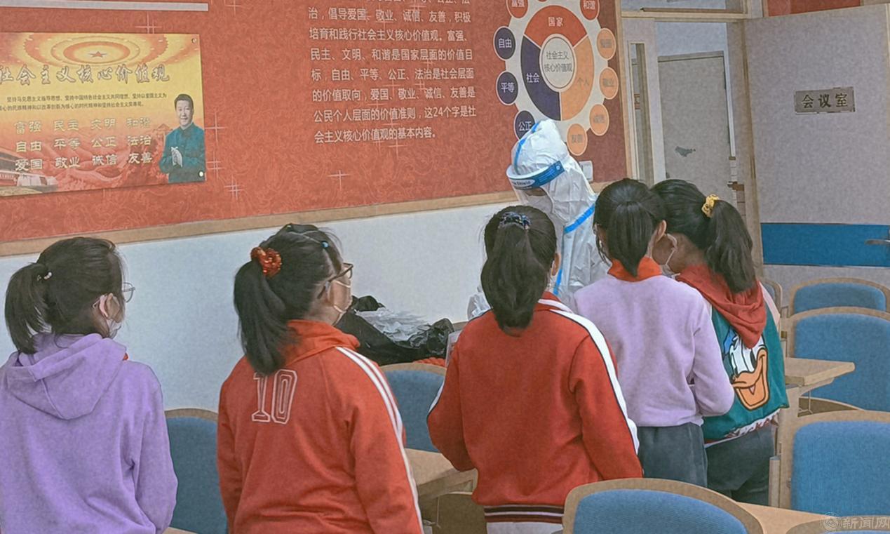 黎蕊的工作主要協助做好學校師生的核酸檢測工作,當時疫情還沒有十分嚴峻,全學校只有她和校醫兩個人為師生做核酸。校醫負責采樣,她負責維持秩序和引導,高峰的時候一天要為800到1200人進行核酸檢測,從早上8點要一直忙到下午2點。黎蕊說,由于防護服密閉性強,天冷了冰涼,天熱了又一身汗,穿在身上的感覺很難受,現在看到穿著防護服工作的醫護人員,都十分理解他們的辛勞。