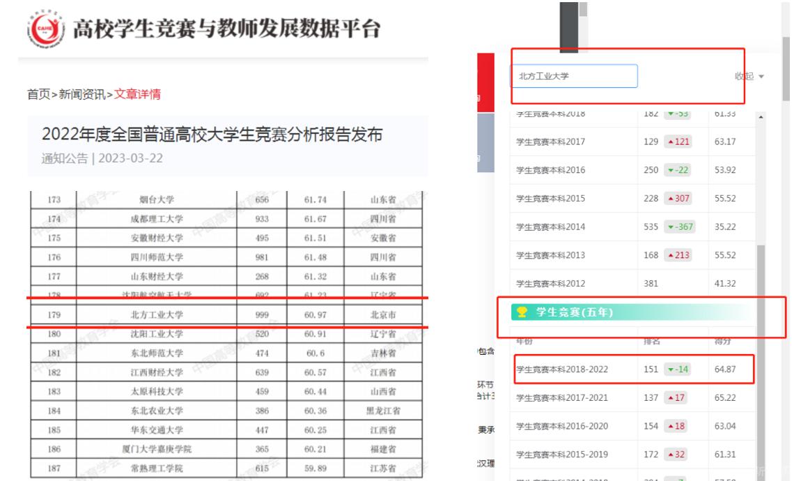 近日,中國(guó)高等教育學(xué)會(huì)高校競(jìng)賽評(píng)估與管理工作組發(fā)布2022年度全國(guó)普通高校大學(xué)生競(jìng)賽分析報(bào)告,我校大學(xué)生競(jìng)賽排名居北京市屬高校第2名。