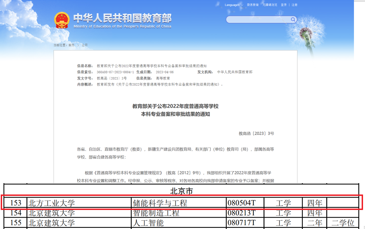 4月6日,教育部發布《關于公布2022年度普通高等學校本科專業備案和審批結果的通知》,我校成功獲批儲能科學與工程本科新專業。