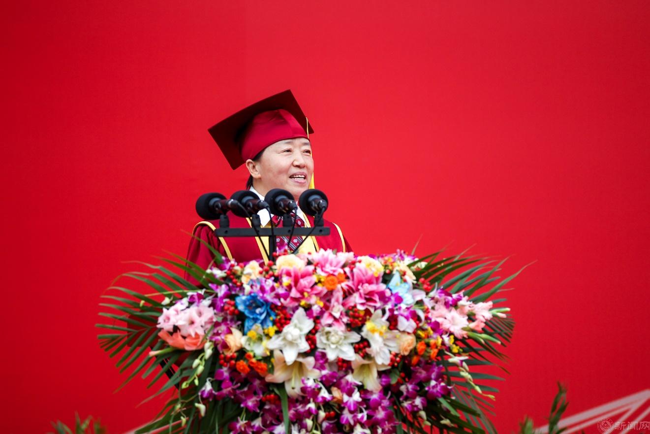 上午7點整,畢業典禮在升國旗、奏唱國歌中正式開始。校黨委副書記田紅芳主持大會。