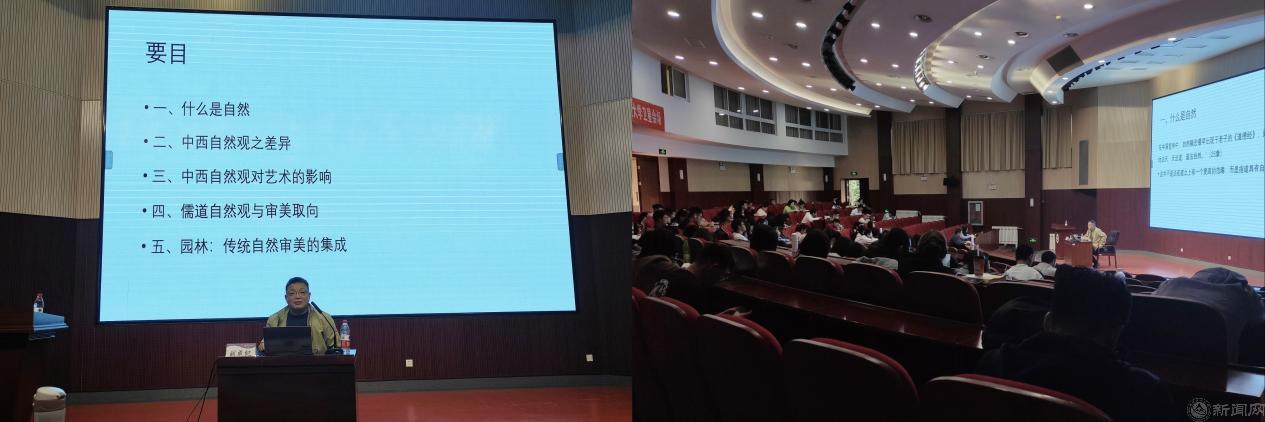 講座中,劉成紀(jì)教授從什么是自然、中西自然觀之差異、中西自然觀對藝術(shù)的影響等五個方面介紹了中國文化中的美與自然。他生動闡述了中西文化背景下的不同自然,深刻揭示了自然背后的文化傳統(tǒng),讓大家感受到一個充滿文化意味的自然,也讓大家認(rèn)識到在中國文化中自然、美與文化的密切關(guān)系。劉成紀(jì)教授的報(bào)告受到在場師生的歡迎。
