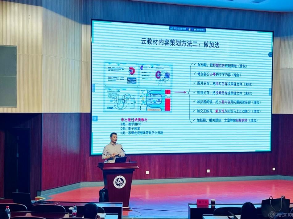 高健副院長從數(shù)字教材的政策與發(fā)展趨勢、云教材平臺的展示、數(shù)字教材建設(shè)一體化服務(wù)體系和校企合作案例等幾方面進行了闡釋。他表示,數(shù)字教材的編寫理念是“以學(xué)習(xí)者為中心”,應(yīng)用新一代信息技術(shù),整合優(yōu)質(zhì)資源,創(chuàng)新教材呈現(xiàn)方式,更新內(nèi)容形態(tài),培育和打造一批以數(shù)字教材為代表的新形態(tài)教材。高健副院長還解答了教師們關(guān)心的數(shù)字教材出版周期、版權(quán)等問題,現(xiàn)場交流氣氛熱烈。