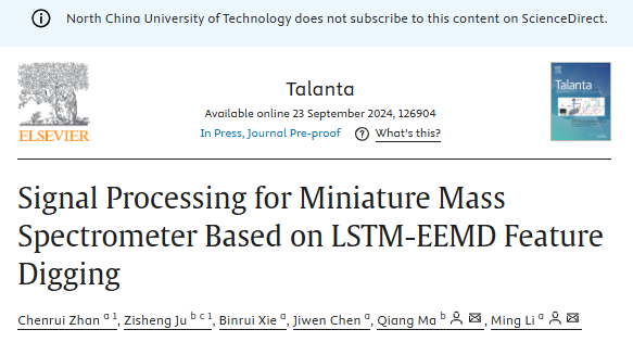近期,我校電控學(xué)院李明研究員在國(guó)際頂級(jí)期刊《Talanta》(中科院一區(qū)、TOP期刊)發(fā)表題為“SignalProcessingforMiniatureMassSpectrometerBasedonLSTM-EEMDFeatureDigging”的研究論文。該研究創(chuàng)造性地提出了一種基于長(zhǎng)短期記憶-集合經(jīng)驗(yàn)?zāi)B(tài)分解(LSTM-EEMD)的數(shù)據(jù)處理方法,為提高小型質(zhì)譜儀在復(fù)雜基質(zhì)樣品和惡劣環(huán)境條件下的現(xiàn)場(chǎng)檢測(cè)性能開(kāi)辟了新路徑。質(zhì)譜信號(hào)是典型的非平穩(wěn)信號(hào),由于硬件限制和環(huán)境條件約束,通常會(huì)受...