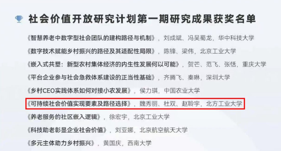 3月24日,騰訊社會價值開放研究計劃第一期研究成果評選結果揭曉,我校經(jīng)管學院魏秀麗副教授團隊承擔的課題《可持續(xù)社會價值實現(xiàn)要素及路徑選擇》成功入選。騰訊社會價值開放研究計劃由騰訊SSV、文化縱橫和騰訊研究院聯(lián)合發(fā)起,自2024年6月首次啟動以來,吸引了眾多高校學者和研究團隊的積極參與,經(jīng)過組委會的嚴格評選,12份研究成果獲獎。魏秀麗副教授團隊深入實地調研,以騰訊在可持續(xù)社會價值創(chuàng)造方面的優(yōu)秀實踐為案例,系統(tǒng)...