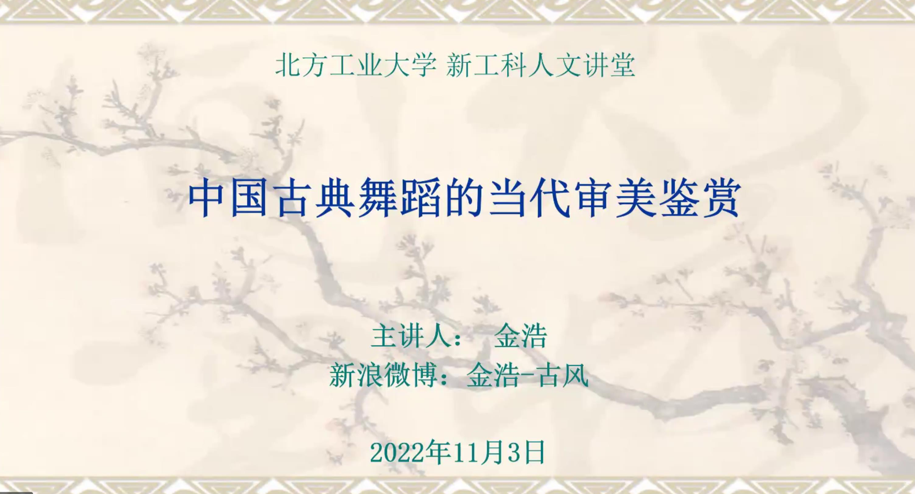 11月3日下午,新工科人文講堂之“中國古典舞蹈藝術欣賞”順利舉辦。本講特邀中國藝術研究院舞蹈所研究員金浩教授主講。機械與材料工程學院等學院160余名師生參加了本次講座。機械與材料工程學院黨委書記王文革主持了講座。在本次講座中,金浩教授從什么是身韻、身韻如何對傳統舞蹈再創造、中國古典舞的審美法則三方面對中國古典舞蹈的當代審美進行了分析與闡述。通過對三支傳統舞蹈作品的導賞,向同學們介紹了在舞蹈中展現身韻...
