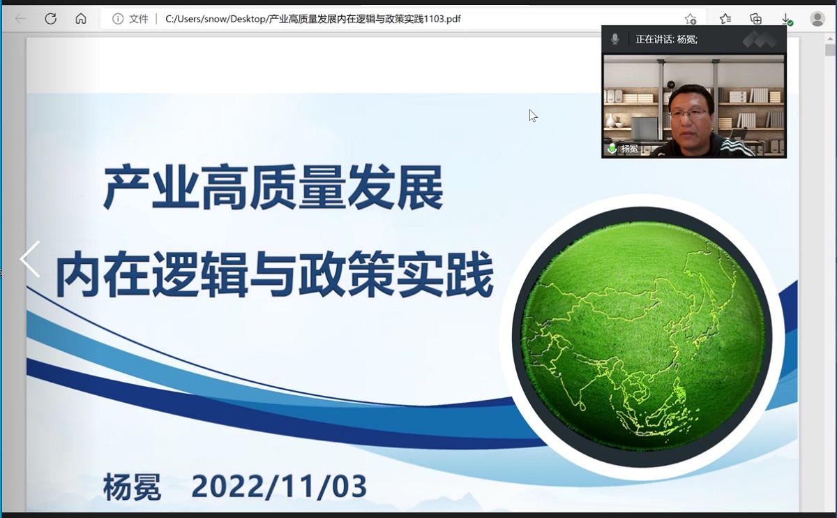 11月3日,經濟管理學院“勵學講堂”第3期以騰訊會議形式舉行。武漢大學經濟與管理學院教授、博士生導師、經濟研究所所長、湖北省人文社科重點研究基地——武漢大學人口·資源·環境經濟研究中心主任楊冕教授受邀為學院師生開展主題為“產業高質量發展內在邏輯與政策實踐”的學術報告。講座由經管學院郭正權教授主持。?楊冕教授重點闡述高質量發展的由來及其本質內涵,通過豐富理論知識向與會師生深刻的闡述了產業高質量發展的核...