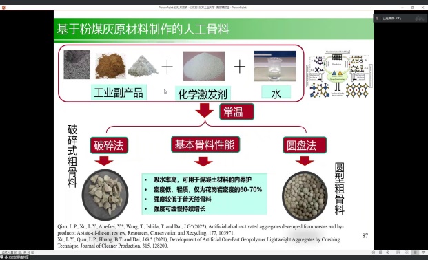 10月10日下午,土木工程學院邀請香港理工大學戴建國教授以線上方式為學院師生做了題為“新型土木工程材料和結構研究進展”的學術報告。學院部分教師和研究生參加會議。報告會由學院副院長宋小軟教授主持。戴建國教授通過“多功能混凝土/鋼結構表面涂層”“超高性能纖維增強水泥基復合材料”“纖維增強樹脂復合材料及結構”“化學激發地聚物水泥/混凝土”“基于粉煤灰原材料制作的人工骨料”五個部分進行了深入講解。報告開闊了...
