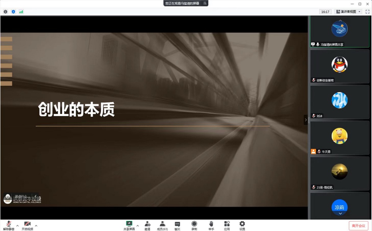 11月26日上午,經濟管理學院通過騰訊會議在線舉辦了“創(chuàng)新創(chuàng)業(yè)導航”系列講座第三講。洪泰智造合伙人兼中國國際“互聯(lián)網+”大學生創(chuàng)新創(chuàng)業(yè)大賽、“挑戰(zhàn)杯”系列競賽總決賽評委馮璽清先生以“創(chuàng)業(yè)大賽優(yōu)勝指南”為題與我校八十余名師生開展了在線報告與交流。講座由經濟管理學院創(chuàng)新創(chuàng)業(yè)基地劉冰副教授主持。馮璽清老師結合了ofo、錘子手機等諸多實例非常生動形象地對創(chuàng)業(yè)進行了解讀,讓同學們對創(chuàng)業(yè)的本質、創(chuàng)業(yè)的路徑、創(chuàng)業(yè)計...