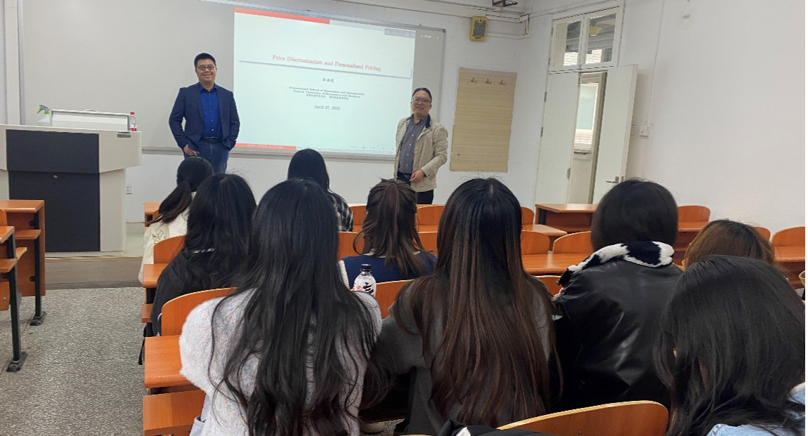 4月27日下午,應經(jīng)濟管理學院邀請,首都經(jīng)濟貿(mào)易大學國際經(jīng)濟管理學院副教授、現(xiàn)任首都經(jīng)濟貿(mào)易大學國際經(jīng)濟管理學院副院長李委明在勵學樓221教室為我校師生作了題為“價格歧視與個性化定價”的學術報告。報告會由經(jīng)濟系張雪峰副教授主持,經(jīng)濟系經(jīng)濟研究生參會。隨著現(xiàn)代社會信息化技術的不斷發(fā)展,個體消費者的數(shù)據(jù)收集變得越來越可行,廠商(特別是在線廠商)利用收集的個體數(shù)據(jù)進行個性化定價(一級價格歧視)變得更加容易...